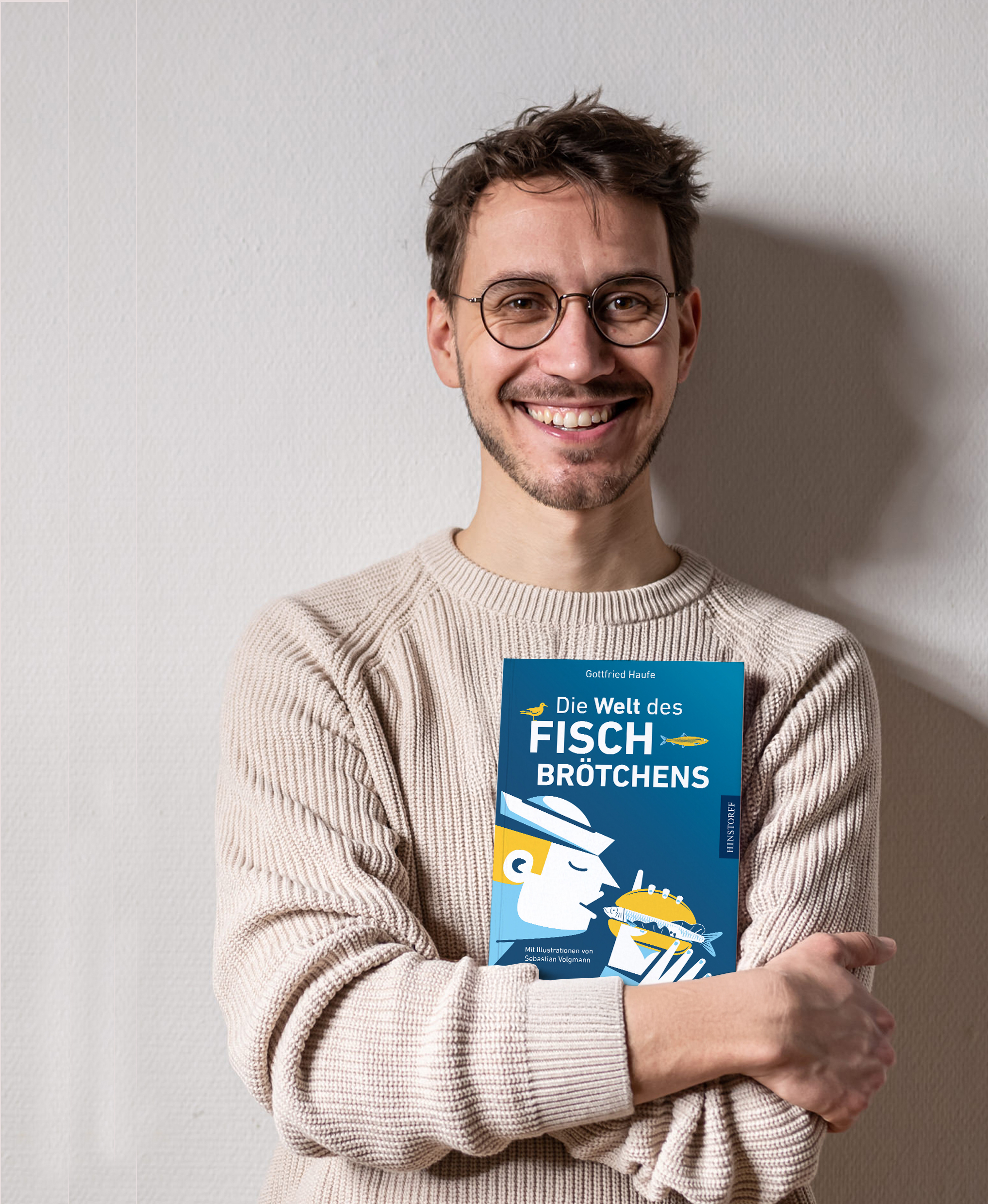 Gottfried Haufe mit seinem Bestseller "Die Welt des Fischbrötchens" auf Lesereise